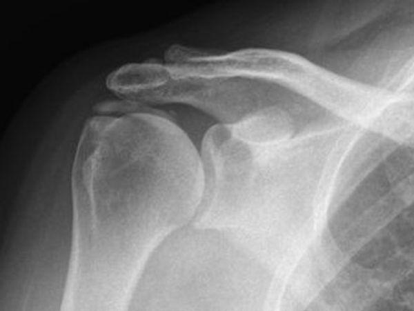 Examination reveals difficulty in early movement, particularly flexion and abduction (limited to 30 deg). Muscle power around the shoulder is reduced 4-/5 in elbow flexion, abduction, IR and ER, limited by pain. Special tests are limited. No muscle loss around the scapula. She is tender to palpation over the ACJ and subacromially. Passive movement in ER is moderately restricted (50.70,90 throughout standard abduction points), with GHJ abd to 80 deg.